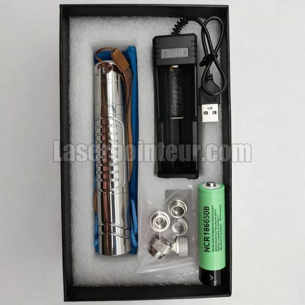 2) Emballage standard : pointeur laser 520nm + une batterie 18650 haute capacité (3200mAh) + chargeur + boîte de rangement