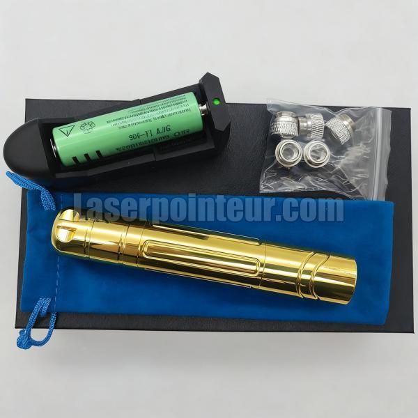 2) Emballage standard : pointeur laser jaune 589 nm + une batterie 18350 + chargeur + boîte de rangement